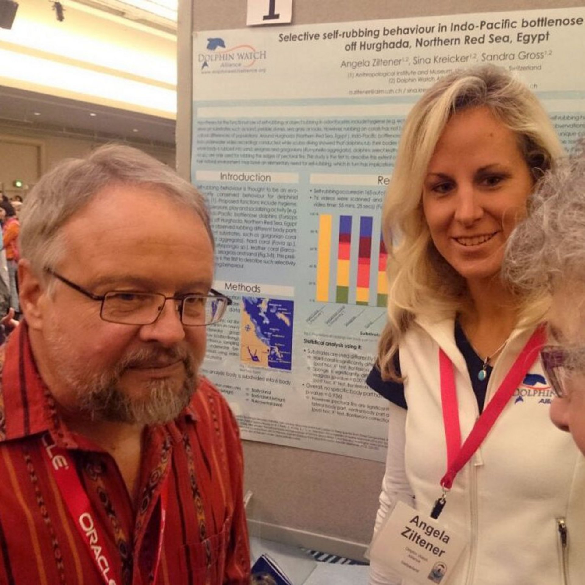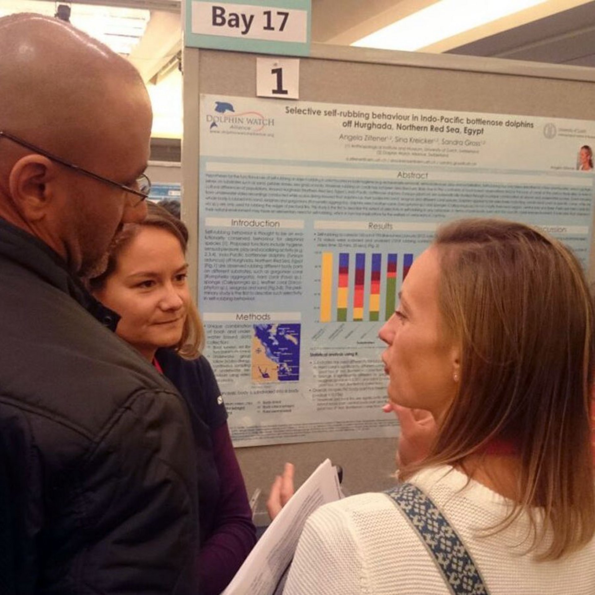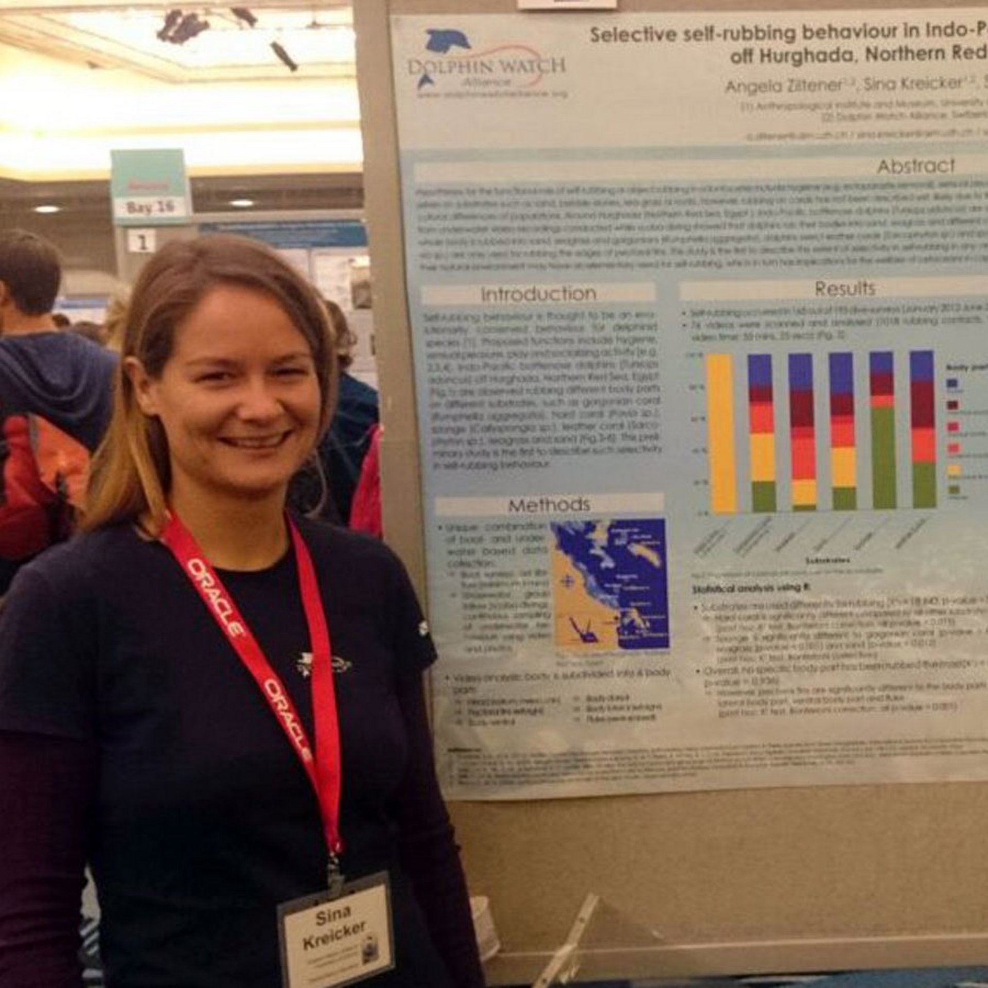 Angela Ziltener und Sina Kreiker präsentieren an der 21st Biennial Conference on the Biology of Marine Mammals in San Francisco ihre Arbeit "Selective self-rubbing behaviour in Indo-Pacific bottlenose dolphins off Hurghada, Northern Red Sea, Egypt".