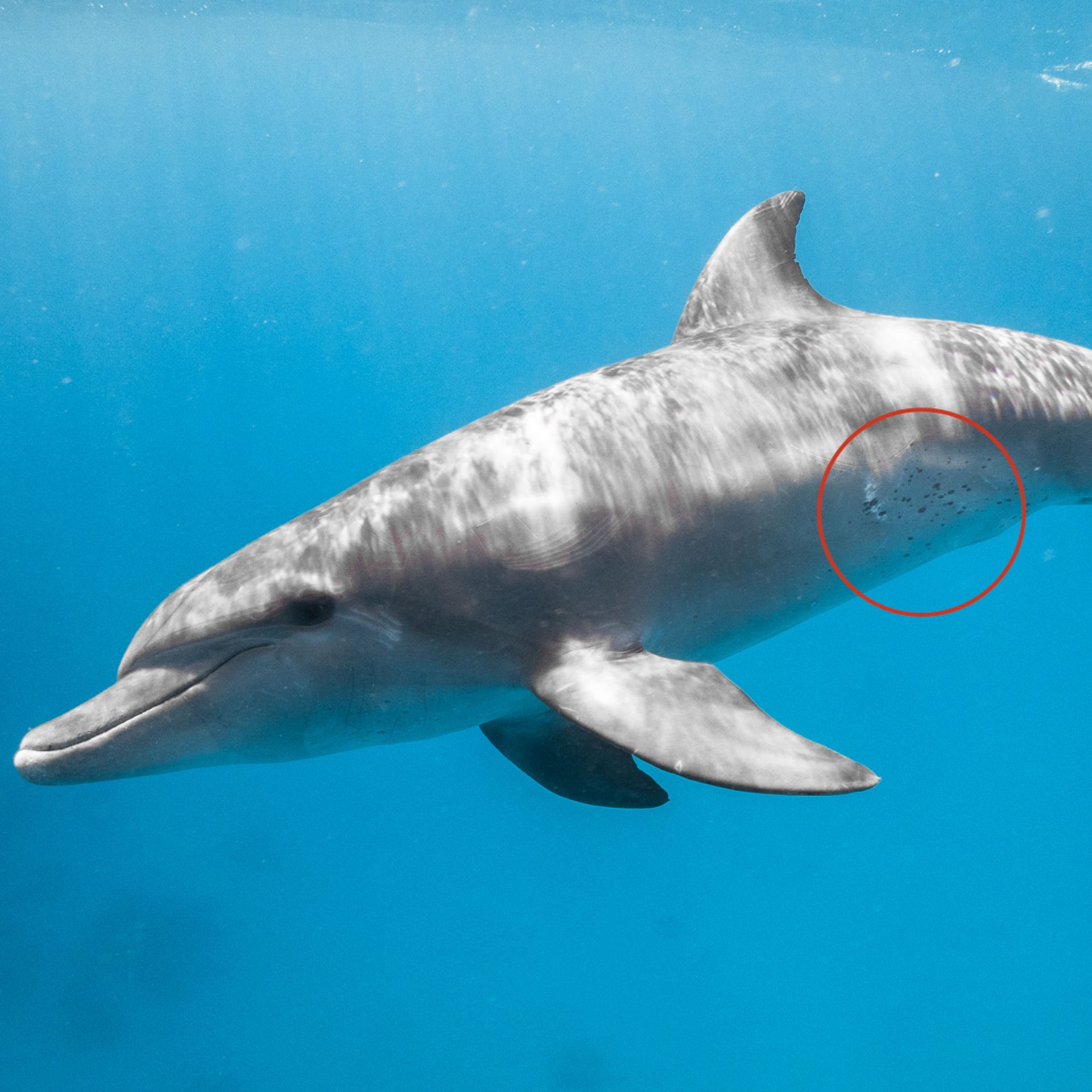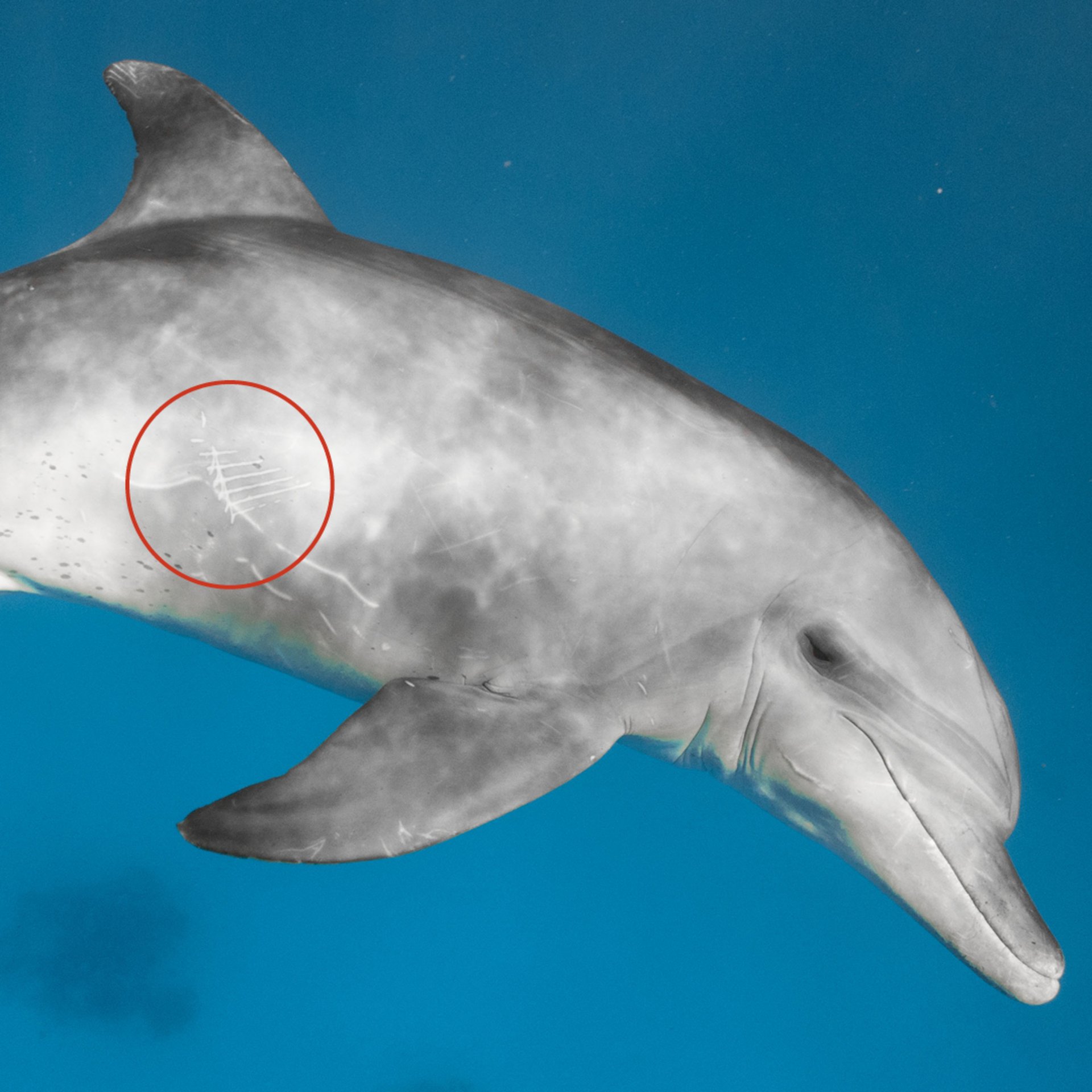 Der Durchbruch bei der Identifizierung von Samih kam durch Unterwasseraufnahmen. Dank unseres umfangreichen Katalogs von Delfinbildern konnten wir seine einzigartigen Flecken und Kratzer zuordnen. Ohne diese Unterwasserfotos wäre es unmöglich gewesen, Samih zu identifizieren.