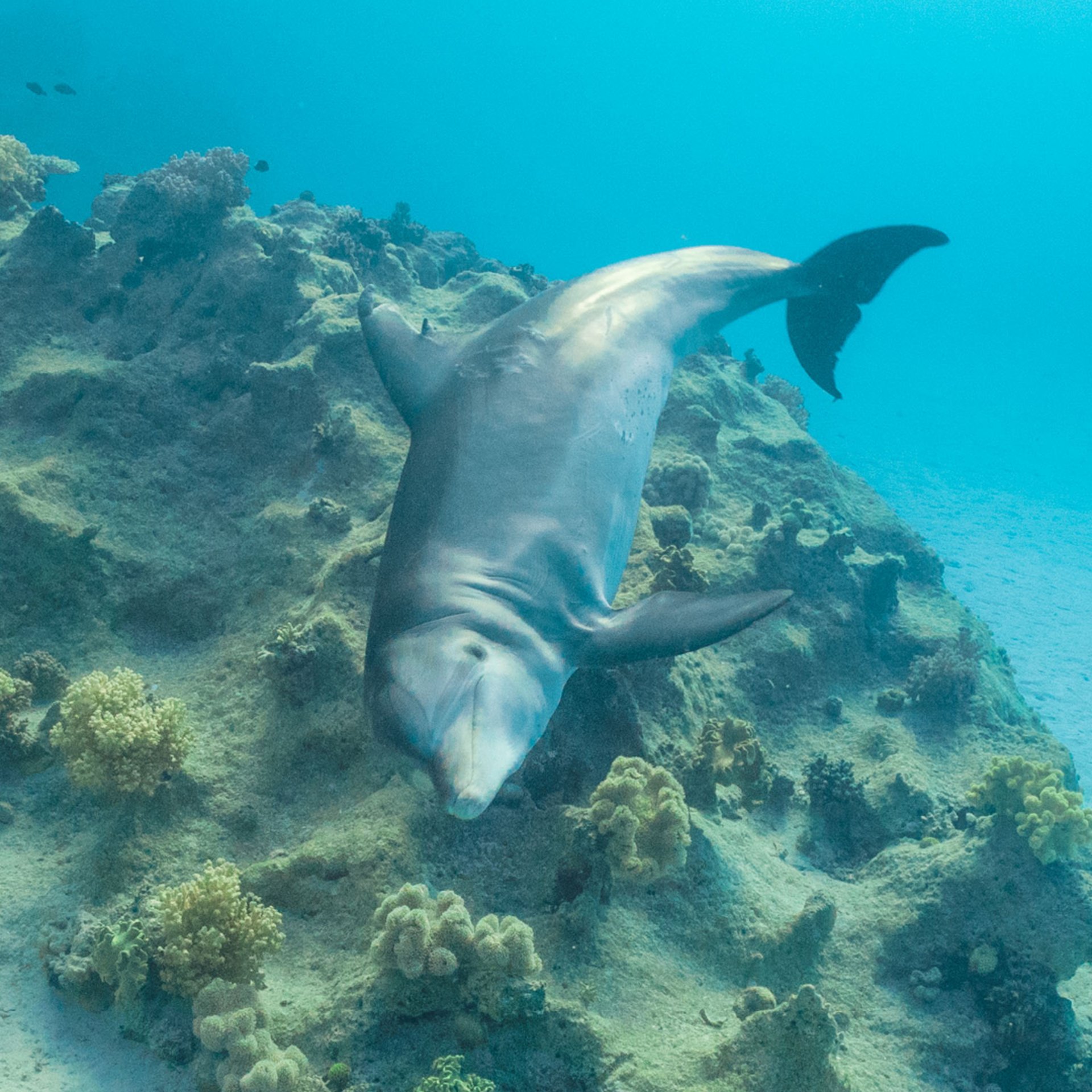 Shaab El Erg ist ein perfekter Ort für verletzte Delfine, die im Riff Zuflucht suchen. Deshalb ist es wichtig, sich beim Schwimmen oder Tauchen an den Verhaltenskodex zu halten, um sie so wenig wie möglich zu stören.