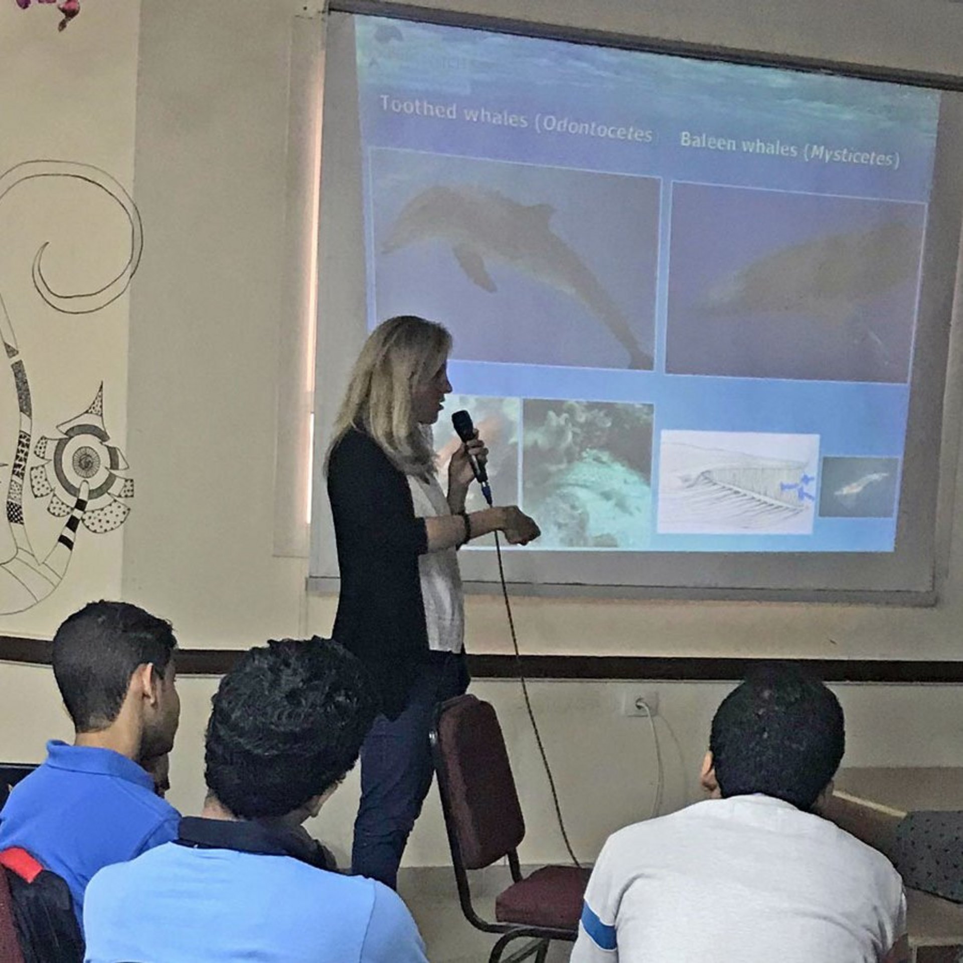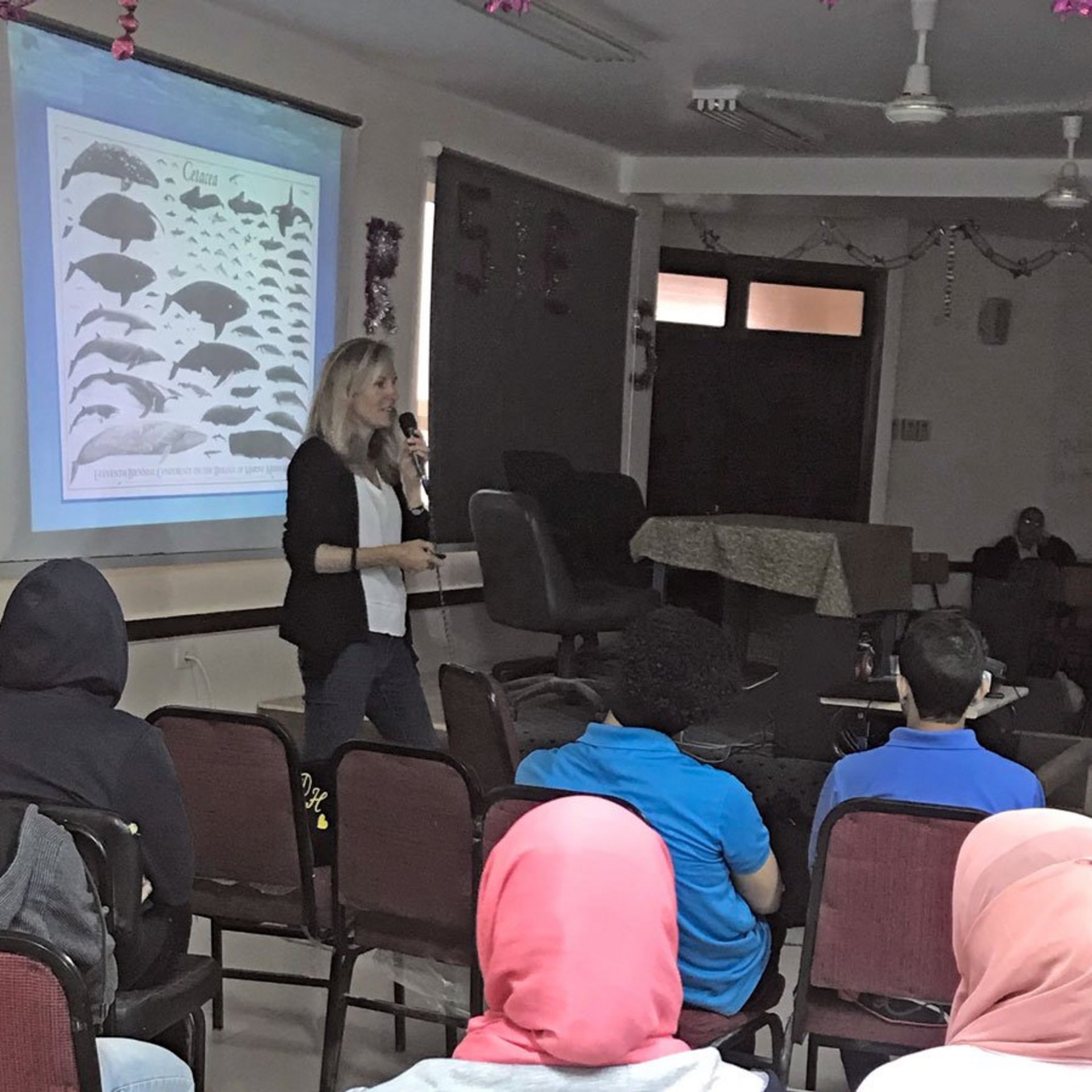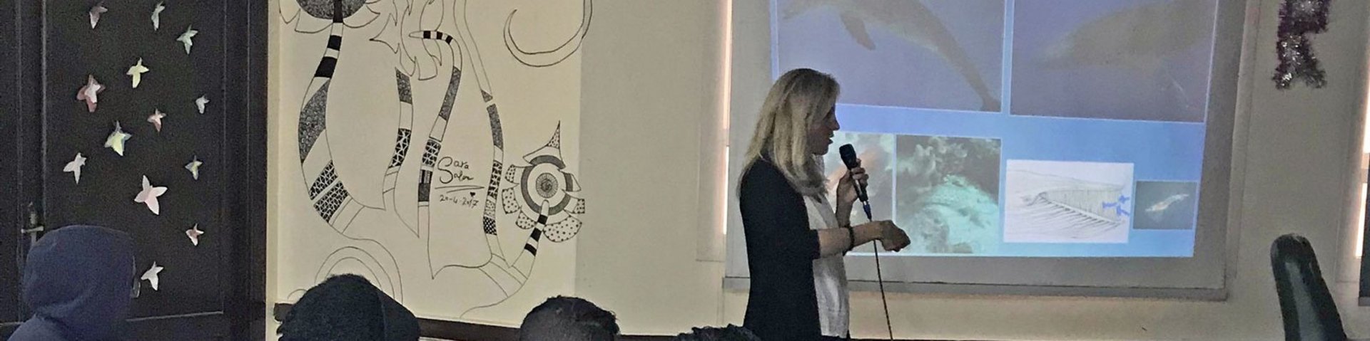 Dolphin Watch Alliance und Care for Dolphins Angela Ziltener hielt eine Vorlesung am Biologie Departement der Red Sea STEM School, Hurghada. Sie unterrichtete die Studenten über die Meeresbiologie, im speziellen über Wale und Delfine.