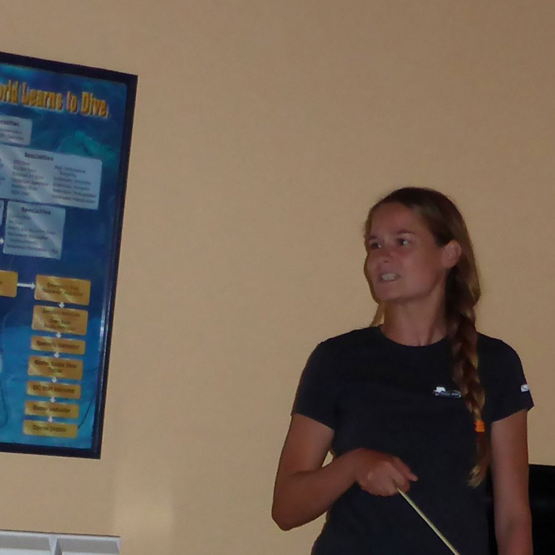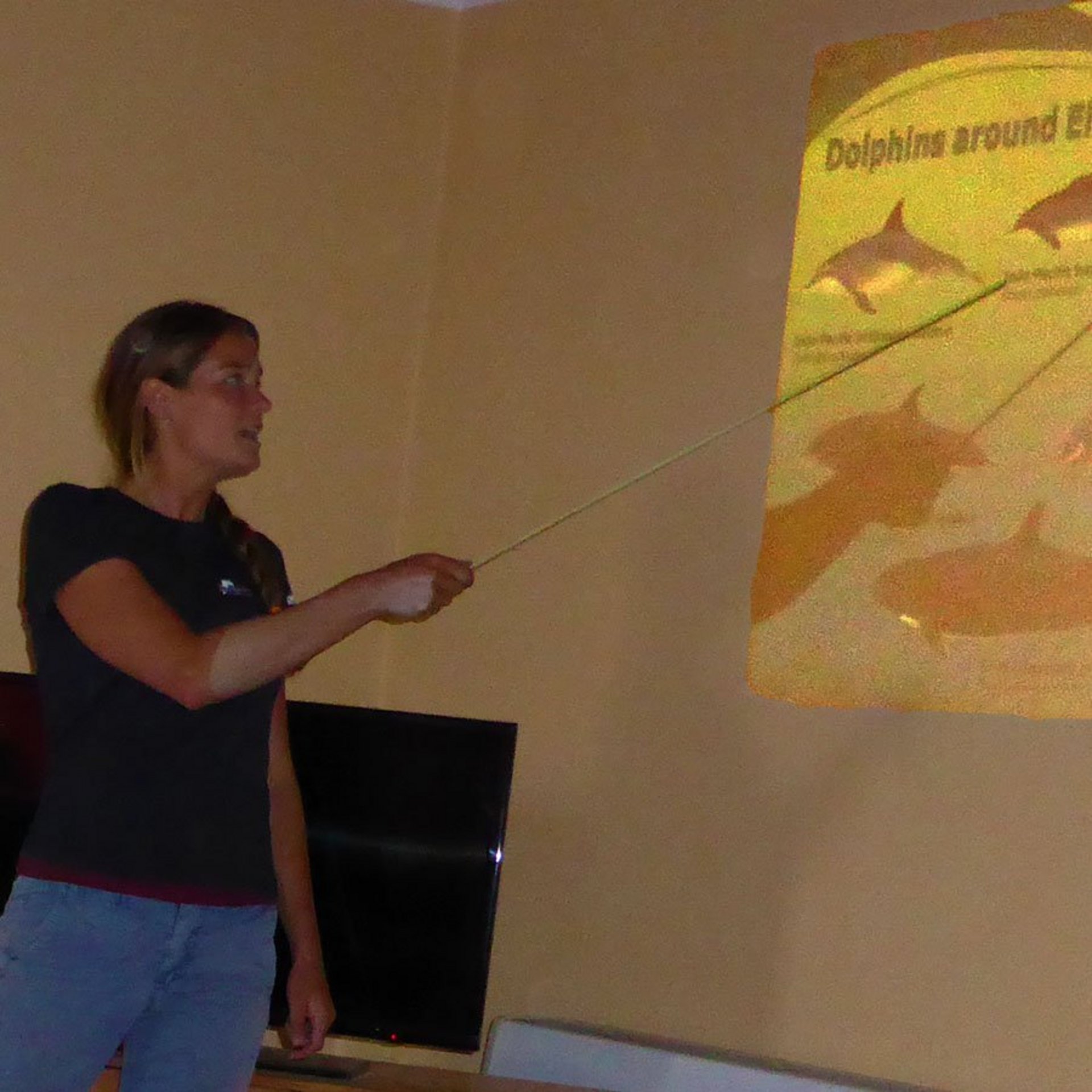 Vortrag von Sina Kreicker über die Bedürfnisse der Delfine beim Blue Water Dive Resort in Hurghada.