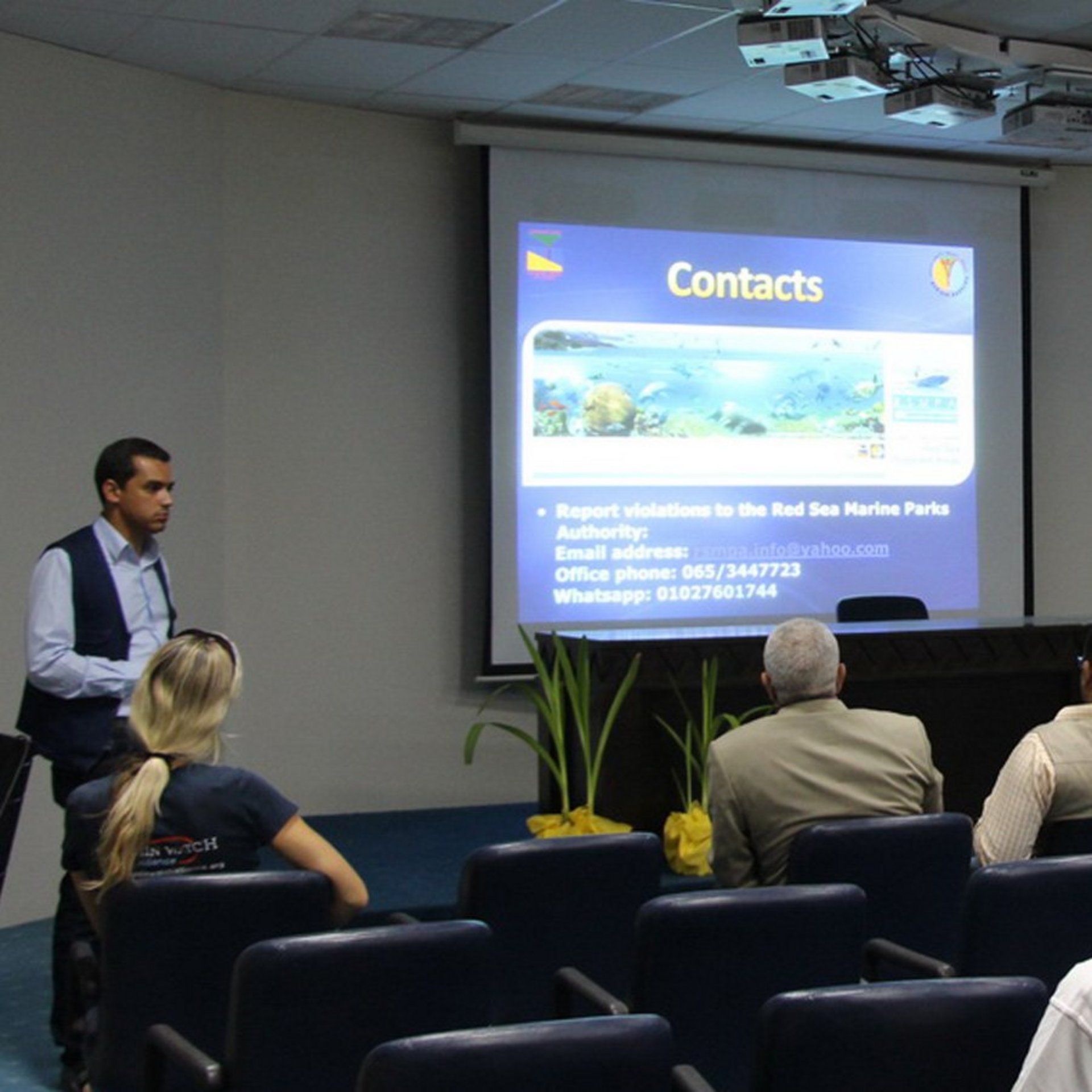 Der durch Orascom Marine Management organisierte Workshop wurde als Teil der El Gouna Earth Week durch Vertreter der Red Sea Marine Park Authority sowie Dolphin Watch Alliance gehalten. Nebst der Einführung in den «Dolphin Code of Conduct» erhielten die Teilnehmenden auch wertvolle Informationen über Biologie und Verhalten der Delfine.