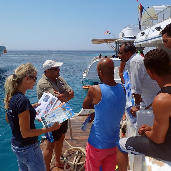 Indem wir unsere Forschungsergebnisse mit möglichst vielen Menschen teilen, schaffen wir ein aktives Bewusstsein für den Tier- und Naturschutz. Aus diesem Grund haben wir 2012 unser Aufklärungsprogramm «Care for Dolphins» ins Leben gerufen, das sich für Arterhaltung und Umweltbildung einsetzt.