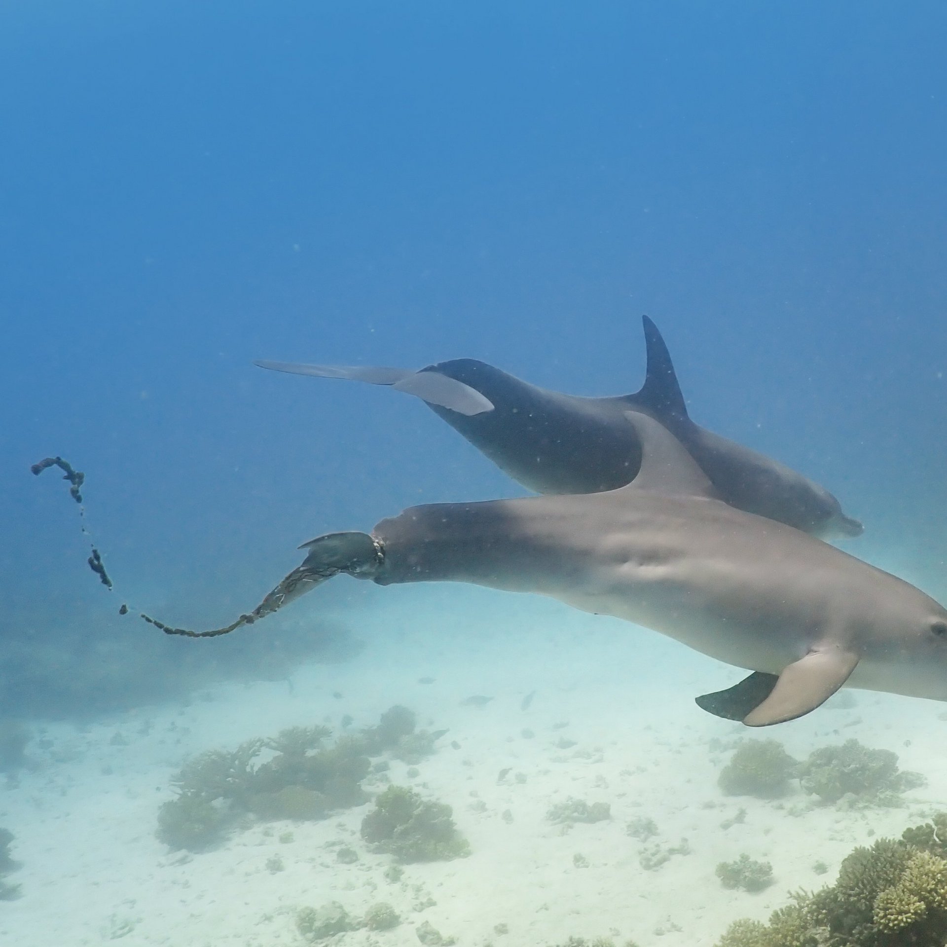 Entanglement in fishing gear is one of the leading causes of death for marine mammals worldwide and threatens numerous animals in El Gouna/Hurghada as well. Researchers from the Dolphin Watch Alliance recently spotted five dolphins with injuries caused by fishing lines. Two of these animals were seen trying to free themselves from lines wrapped around their tails by rubbing against boat mooring lines.