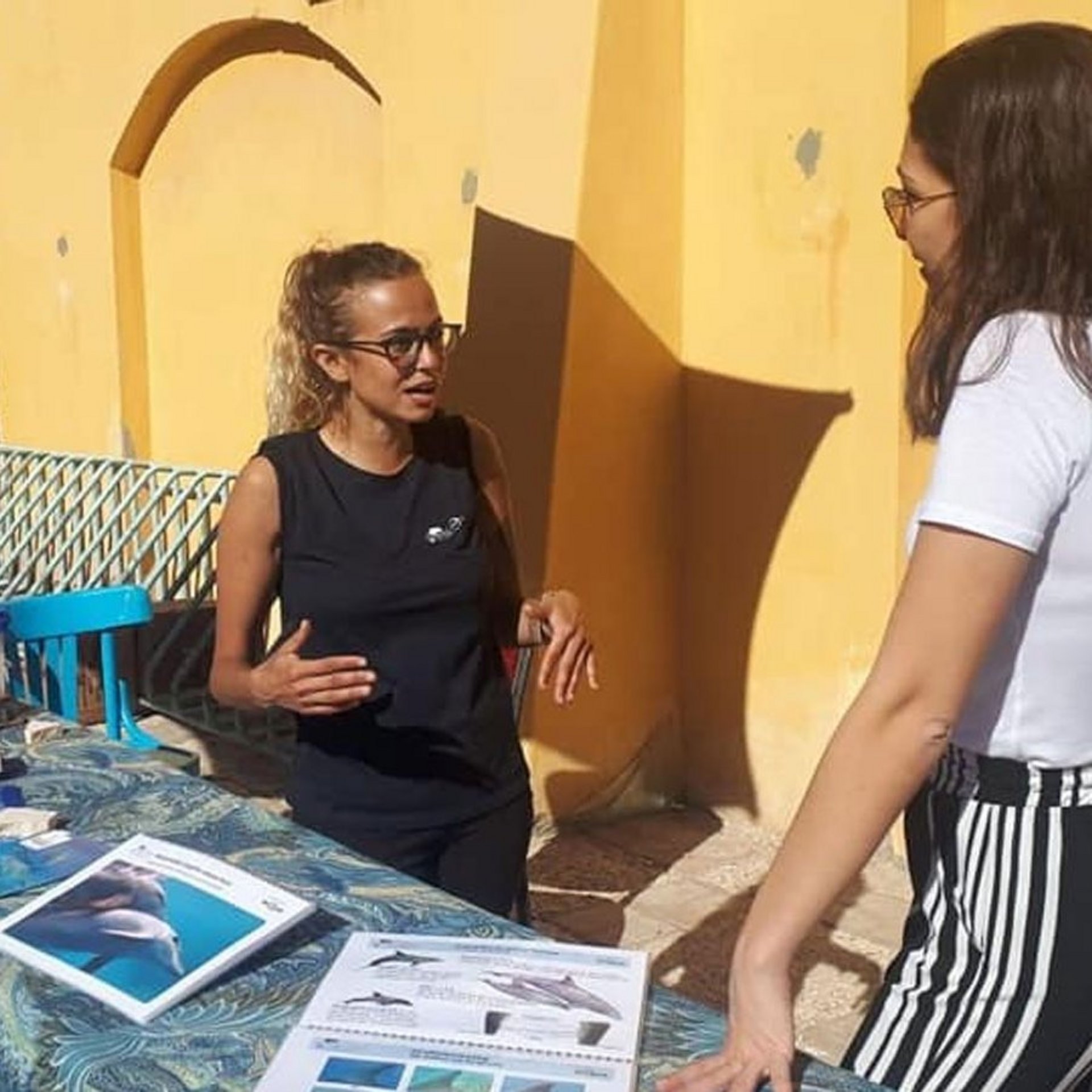 [Translate to Englisch:] Sara El Laithy am Stand von Dolphin Watch Alliance