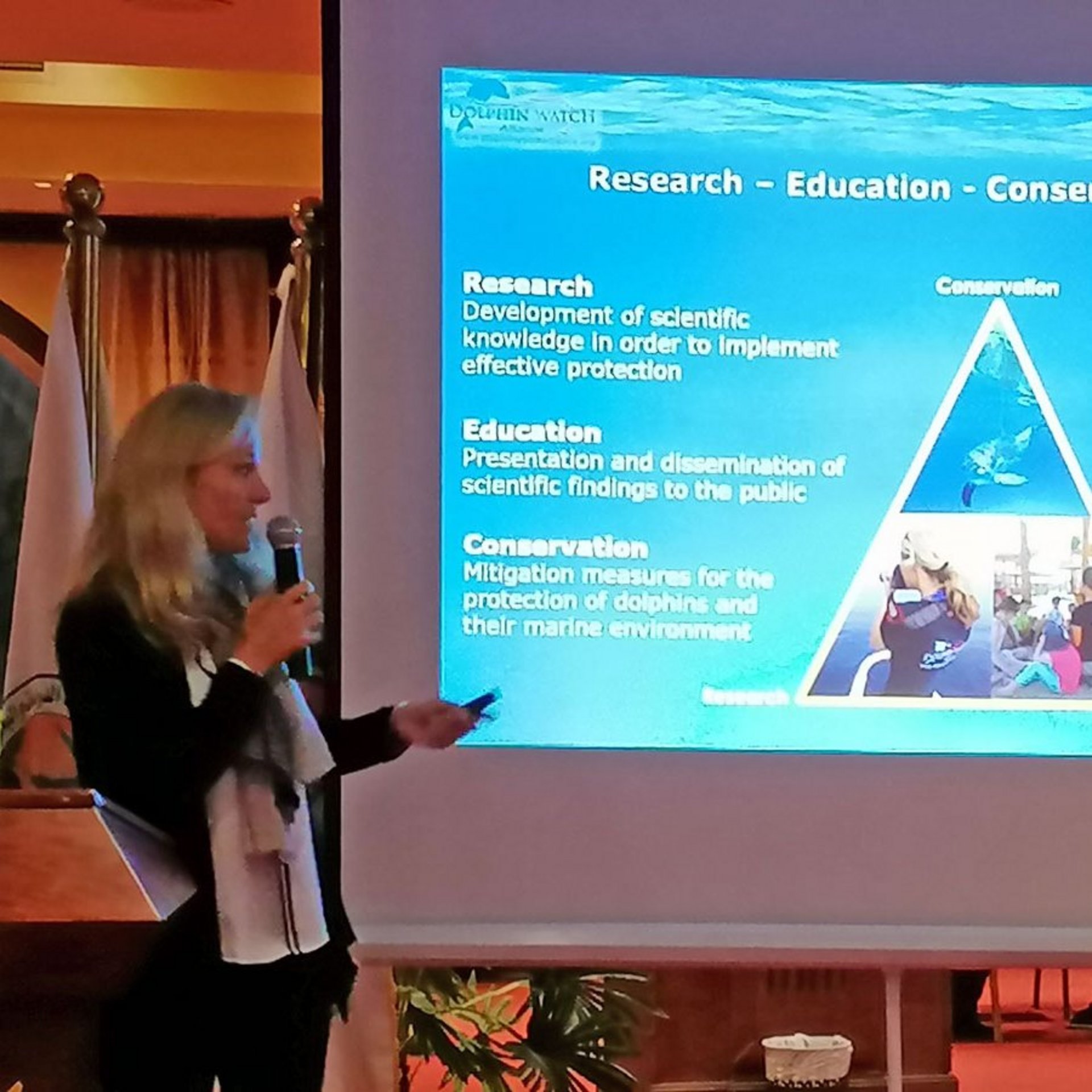 DWA biologist Angela Ziltener was invited as a keynote speaker at the opening of the Sadat City University Conference which was held in Hurghada from April 1 until April 3 2019. She was presenting the ongoing study of the Indo-Pacific bottlenose dolphins in the Red Sea and the conservation management plan in the area.